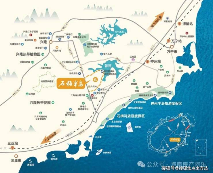 石梅半岛,坐落于兴隆旅游度假区馨湖畔,紧邻海南省级旅游度假区——石梅湾,以43万㎡低密湖岛大盘之姿,荟萃山林湖泉资源,集希尔顿酒店、度假洋房、亲湖别院、山林叠院、休闲配套于一体,为海南东部黄金海岸钜献诚意之作‼
