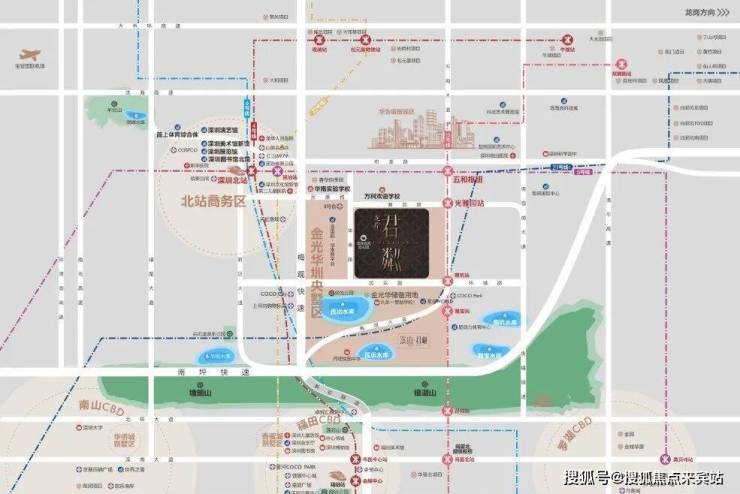 【立体交通篇】多维路网交织,畅达湾区核心项目享有双轨道交通枢纽优势:深圳北站与五和站形成联动,可实现1小时内快速连接大湾区主要城市;五和站作为城际枢纽,汇聚地铁5号线、10号线及规划中的深大、深惠、深广中轴城际线路。项目周边共规划有五条轨道交通线路(包括规划中的22号线等),通过现有地铁网络可快速抵达南山、福田等核心区域。同时,已完工验收的民乐路(华南路-五和大道段)开通后,将有效提升通往梅观高速的通行效率。