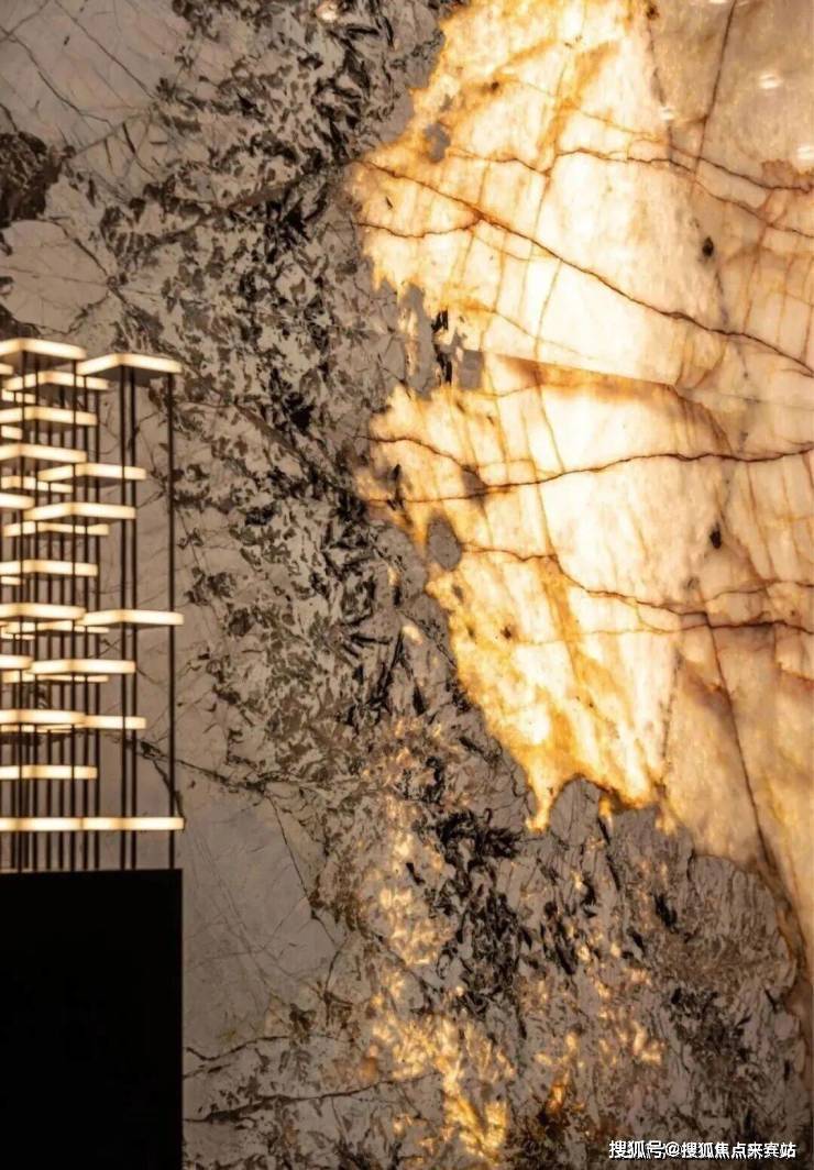 甄选全球奢石铺陈质感公区,文体中心地面采用巴西海浪石材,搭配马达加斯加蓝翡翠、意大利雪山飞狐、整幅伊朗青玉等全球珍稀奢石;