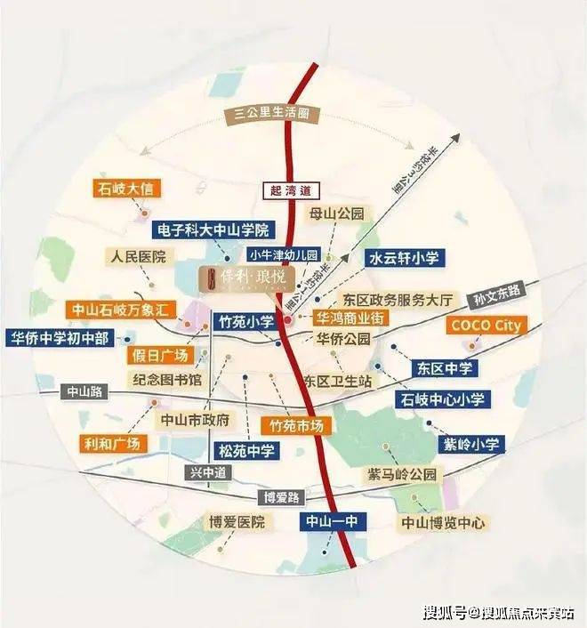 如果说 “悦” 字系是保利对城芯的严苛筛选,那么中山保利琅悦的选址,便是对城市发展脉络的精准洞察。项目择址中山东区价值高地,起湾道中轴—— 这里是中山的行政、经济、文化核芯,汇聚市政府、金融总部、高端商圈、优质学府,更串联起岐江新城的未来蓝图。