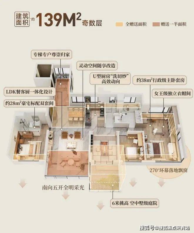 更值得一提的是,在偶数层,长辈套房直连南向约6米挑空庭院: