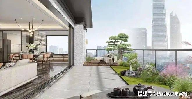 空中墅级庭院,仿佛把家放在无遮挡的半空,消除了人与天空、城市、自然的边界。