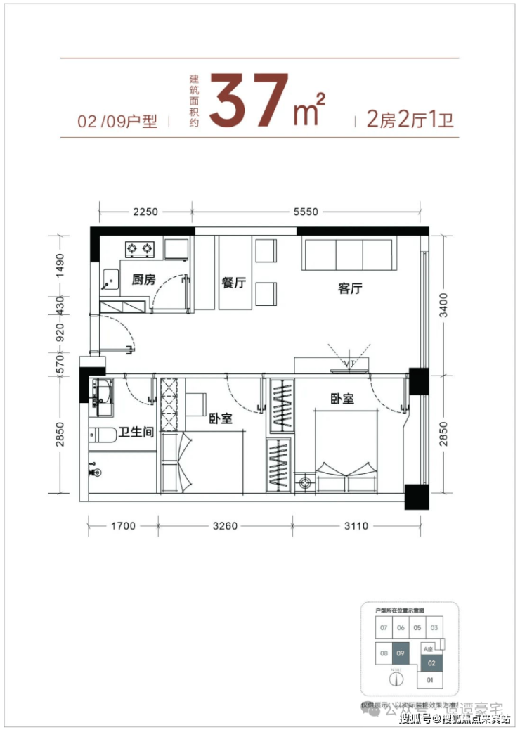 【产品面积】约37㎡小两房(实际套内使用面积接近54㎡)