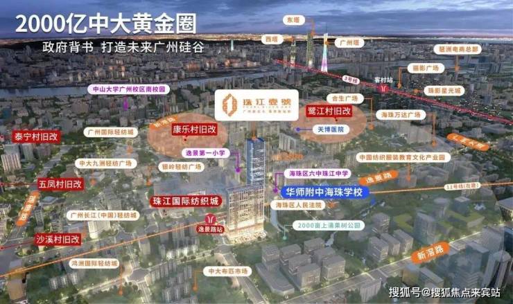 【项目概况】开发商:珠江投资集团物业公司:缦合物业,破亿豪宅同款物业占地面积:约3.7万㎡建筑面积:约31万㎡,LOFT空间约6.8万㎡LOFT层高:约4.5m中空挑高复式面积段:49-95㎡二至五房总户数:875套梯户比:10梯35户层数:共34层(仅25个标准层)拿地时间:2005年交楼时间:2023年6月(预计22年10月可交付)产权年限:50年装修:精装修【交通配套】 5站珠江新城,5站琶洲 11号线逸景路站正上,现场可以看到地铁站正紧锣密鼓施工中。11号线作为大环线,串联起天河、越秀、荔湾、海珠、白云五大中心区,预计将于2022年通车。 项目坐落于2000亿中大商圈之核,与珠江新城、琶洲两大城市CBD,共筑广州商业黄金三角。中大国际创新谷,依托中山大学、中国科学院南海研究所等前沿资源打造重大国际创新谷,将成为集合科研总部、科技孵化、商务配套功能于一体的高品质创新科技集聚区。未来,中大商圈将以中大国际创新谷的全新风貌展现在世界面前,成就比肩世界的“广州硅谷”。珠江壹號凭借其不可复制的核芯地理位置,将成为炙手可热的当红明星。大体量商业旗舰,城芯风向标除了地标的稀缺价值、地铁物业价值之外,珠江壹号还坐拥一站式高端配套等多重优势,万达广场、合生广场以及珠江壹号自带的7万㎡时尚MALL举步即达,汇集全球时尚娱乐休闲,高端餐饮美食,文体商务等全配套生活业态,开启万千精彩生活。