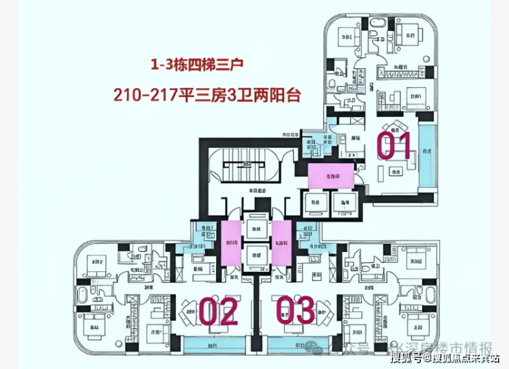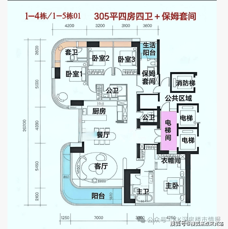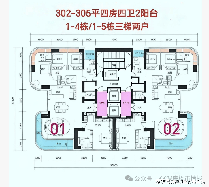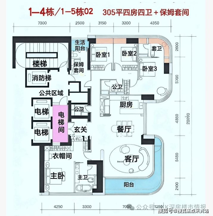 1-4栋和1-5栋、三梯两户、西南向、每户305平