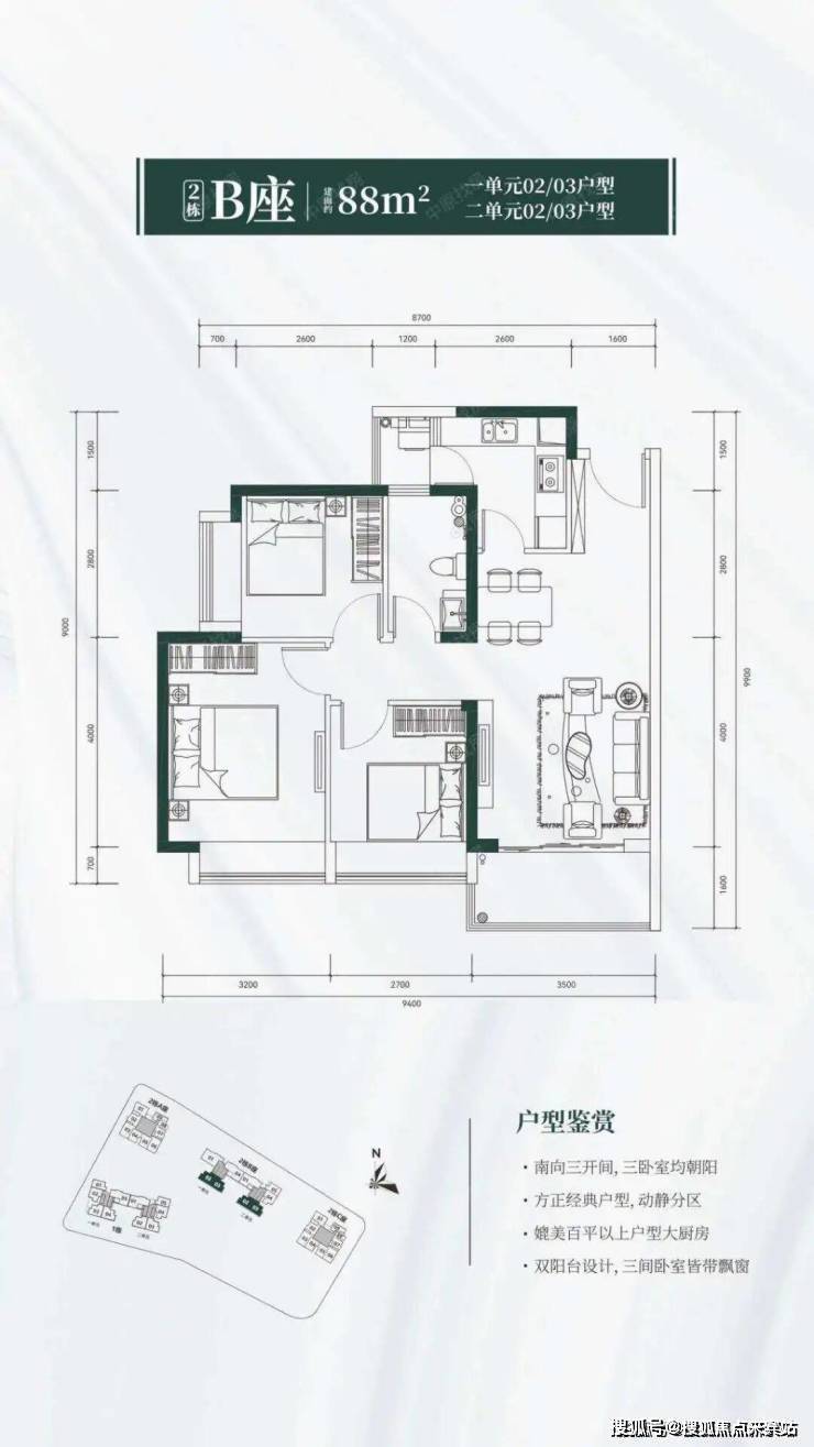 户型简介双阳台,全阳光户型
