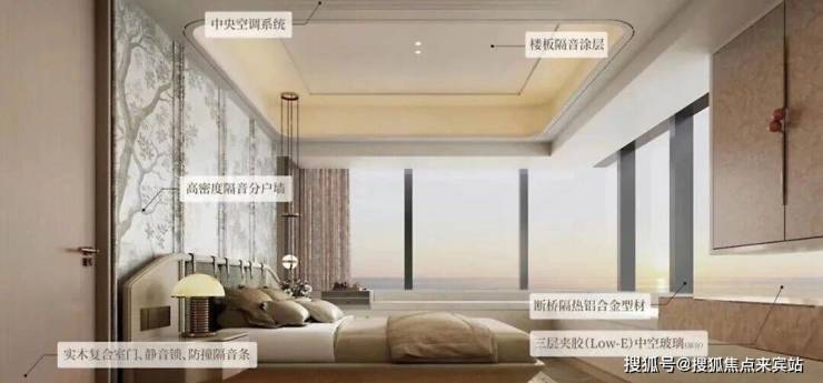 「天健·湾TIME」外立面采用水晶灰蓝玻璃+米白色调铝板,部分玻璃为三层LOW-E玻璃,与深圳湾售价20万+/平的恒裕深圳湾等豪宅同标。材质安全、隔音效果更好,大大的提升了景观视野开阔性。