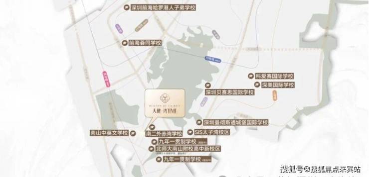项目对口南二外赤湾学校(九年一贯制)。其中南山中英文学校受到不少家长的青睐,因为早在2006年,这个学校就被评为省一级学校。周边还有北师大南山附属高中新校区。项目东侧规划有一所九年一贯制学校,预计2026年动工。