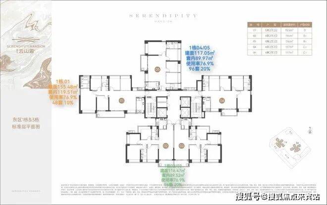 首推西区2栋(下图左侧地块)共334套商品房,层高为36/37层,户型朝向以西南/东南为主,容积率为3.45,整体得房率约76%-80%(不算飘窗和阳台一半面积)加上赠送面积得房率在80-85%。