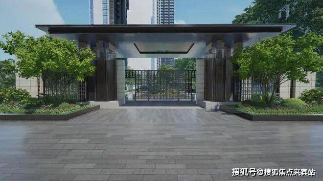 再看金众的设计图中,一一来看,大门让人眼前一亮,现代中式建筑精髓融合现代化格调,沿袭了金众公馆系的基因。超尺度设计,高端大气,美感外溢且内外协调。
