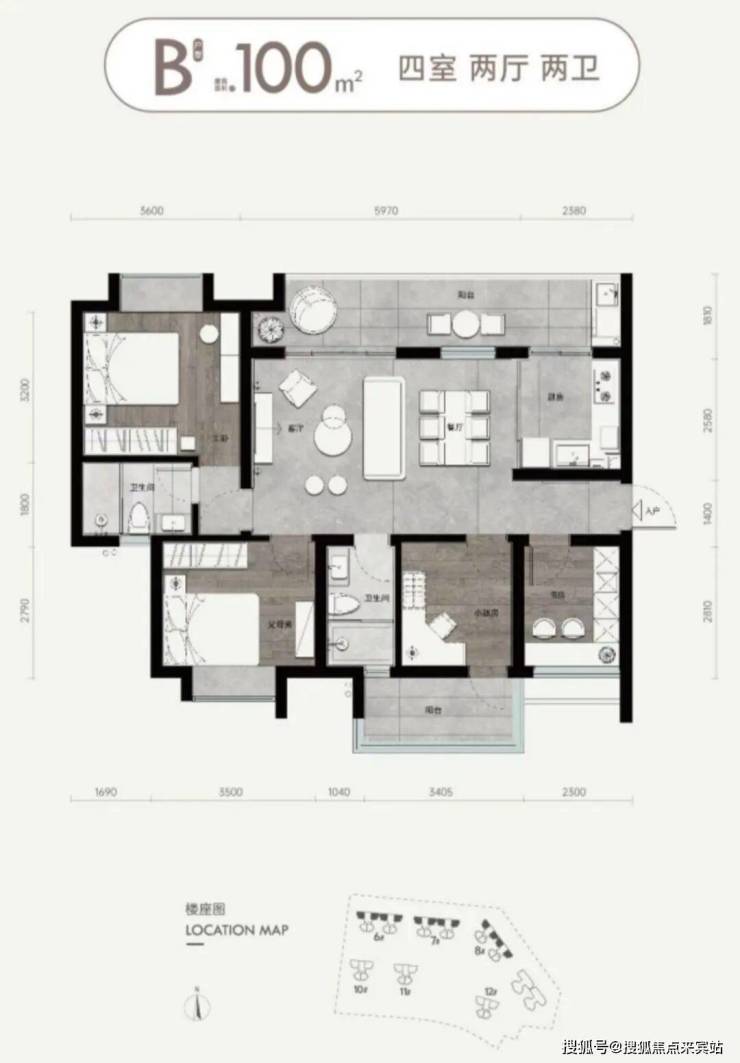 2、100平米四房两卫,送20平米