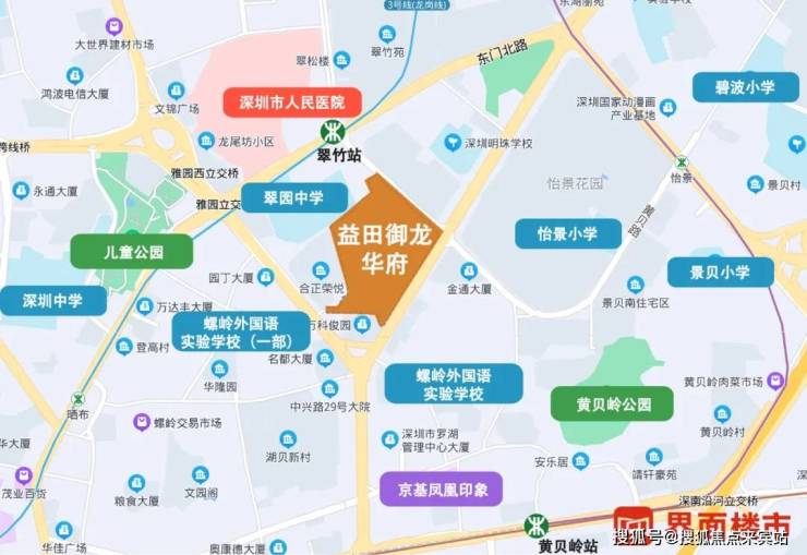 周边教育资源也十分丰富,益田御龙天地紧邻全市排名前四的翠竹外国语实验学校,这是罗湖老牌重点学校,师资力量强,生源也非常优质,升学率放在整个深圳一直都是第一梯队。(目前正在拆除重建,预计2023年8月投入使用)