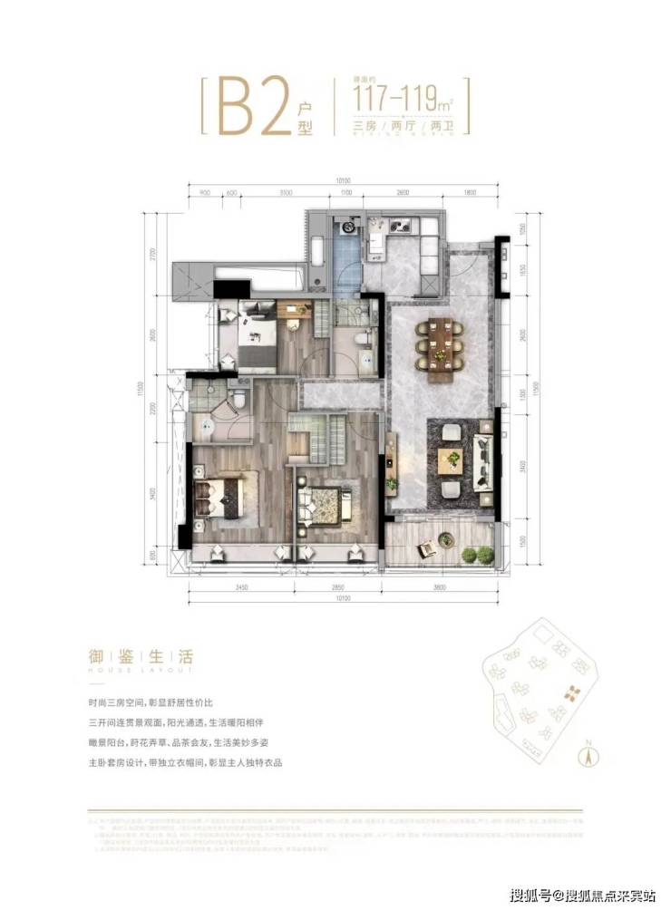 建面约112-119平三房两厅两卫;