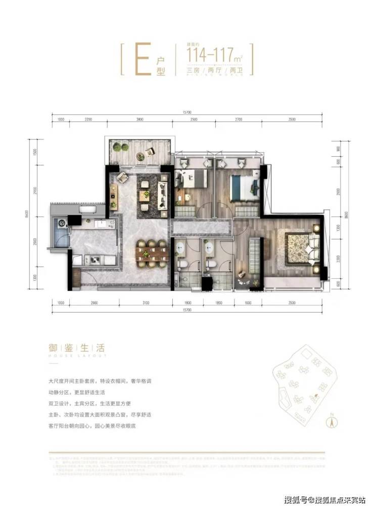 在户型设计上,项目更是不遗余力,从居住者的生活体验出发,精雕细琢,打造奢阔舒适的宜居产品,能满足三口之家、三代同堂等全周期的需求。