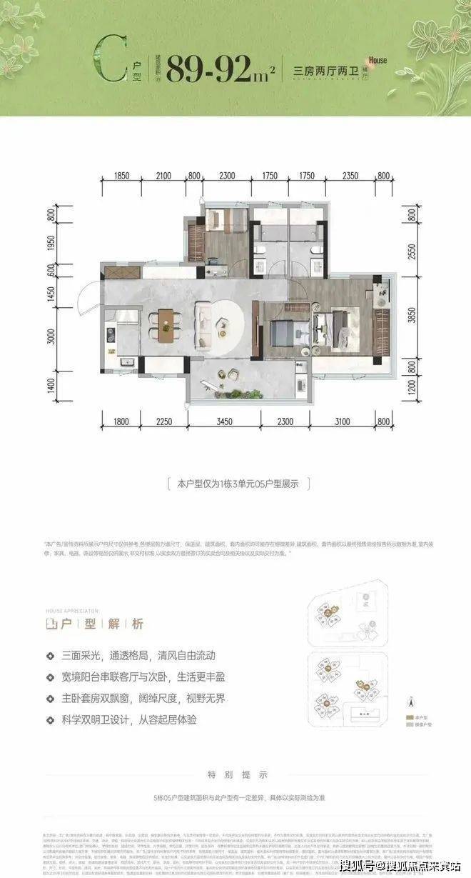 作为招商蛇口深圳公司首代、前海会展片区首个超级新规作品,项目建面约78-117㎡三至四房户型,拓展后实际使用率高达96%-105%,兼顾实用、宽敞、阳光与精致。