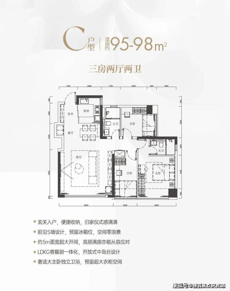 全屋150余项细节打磨,约95%使用率,得房率远超传统高层;95㎡户型客厅,5米超宽开间;九大收纳体系,近15%收纳比,对比传统收纳设计高出2.5倍,拓展更多空间。