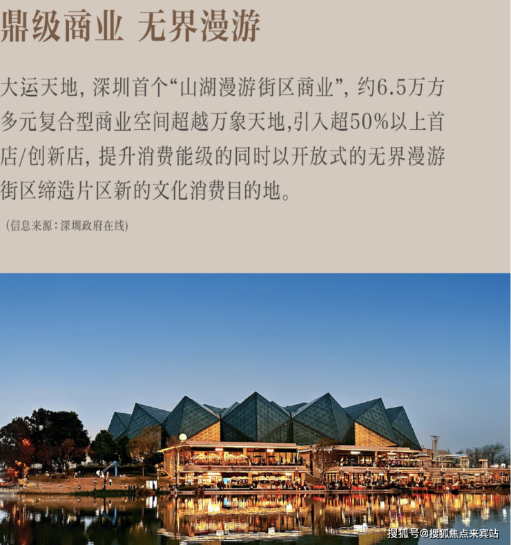 项目自带有1000㎡社区底商,一路之隔就是大运天地,约1.7公里还有星河cocopark,里面有山姆会员商店,算是目前龙岗最高端的商业,距离约4公里还有万科广场,世贸百货,仁恒梦中心等大型商业体,在未来大运枢纽还会打造25万㎡的高端商业体。