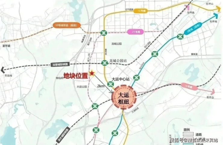 项目距离地铁16号线“大运中心站”约800米,步行约10分钟,1站可到达大运枢纽,快速换乘3/14号线,以及未来的深大城际;距离深惠城际“大运北站”约1公里,目前仍在建设当中,计划在2026年11月份通车。