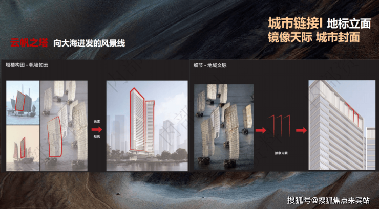 琶洲·樾 | 华樾外立面设计理念,是云帆之塔,形似扬帆起航的风帆: