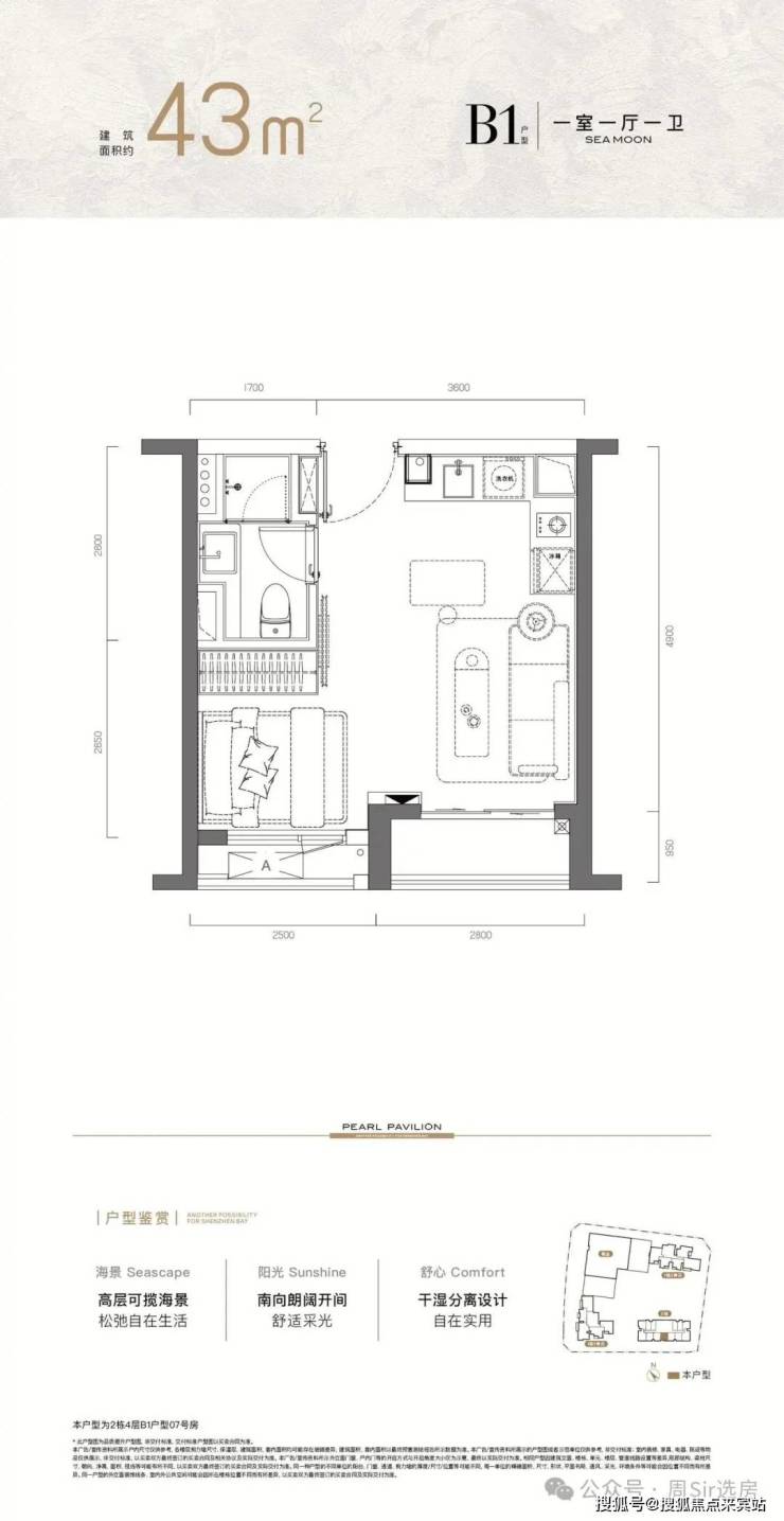 43-44㎡ | 南向瞰海一房一厅 | 落地窗