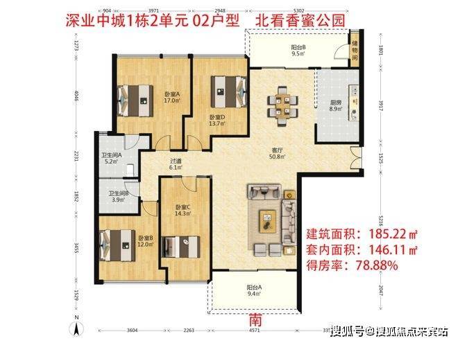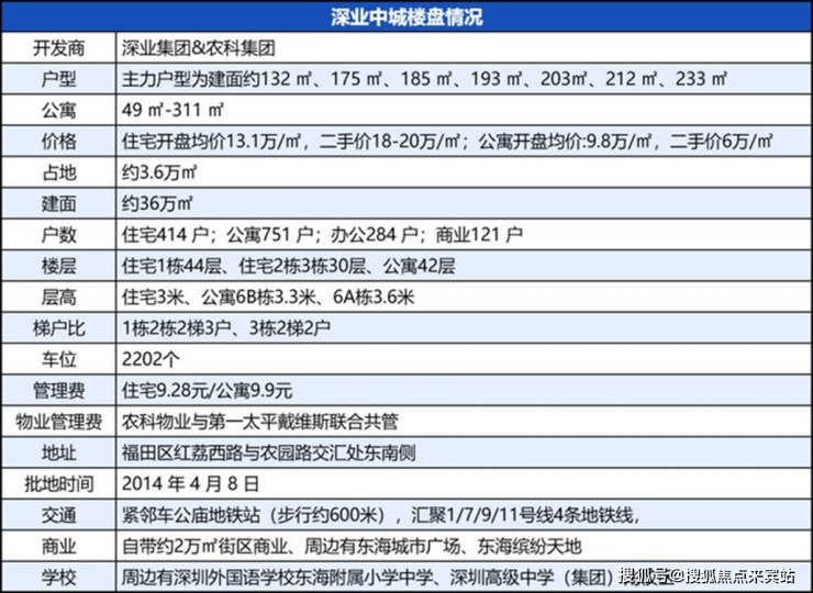 深业中城由深业集团与农科集团联合开发,2014年拿地,2020-2022年分批入伙,均实现"日光",是集住宅、公寓、写字楼、商业于一体的城市公园综合体。