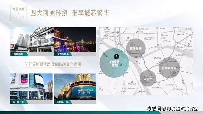 28 号线白鹅潭站直达琶洲、黄埔高铁枢纽站。8处过江设施(如意坊隧道2022年底通车)。石围塘TOD有 47条公交路线,1条有轨电车,1条城轨列车。3km内5所繁华商圈——黄沙商圈(西城都荟)、白鹅潭商圈(花地城广场)、太古仓码头、江南西商圈、乐峰广场