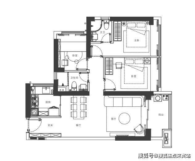 家政阳台定位,6人位餐厅满足多人就餐,主卧独立卫生间