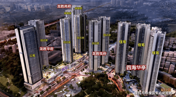 四海华亭项目前身为“龙胜旧村城市更新单元”,共分5个地块建设,分别是龙胜华府,龙胜尚府,龙胜悦府,龙胜云坊,四海华亭,另外配建1所9年制学校,如今的龙华中学弘毅校区(龙胜学校),项目总占地面积约5.45万㎡,总建筑面积约56万㎡。