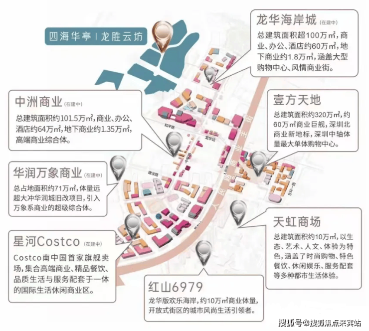 【四海华庭】小区位于龙华国际商圈规划中心范围内,规划为打造规模超200万㎡的市级核心商圈和世界级未来消费体验中心,而且目前也正在完善当中,多数已经开始动工,项目周围不论是海岸城或者中州华润等旧改,基本都是以此为基托,未来层面上,所有商圈通过空中连廊串联后,将得到巨大的提升空间;
