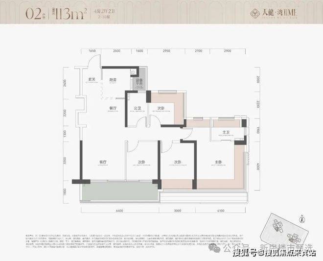 户型产品为113㎡ 4房和139㎡ 5房 约290套,2栋100米内31层住宅,2梯4户,其中主力为113㎡ 4房,具体户新图暂未公布。