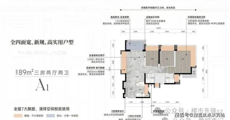 1、四面宽采光:带来全景观视野,其中首推一栋的玻璃占比为40.5%,对比周边项目的景观视野/通风采光提升35-62%;