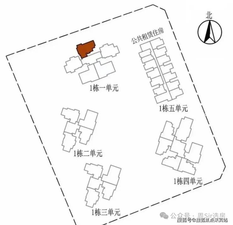 首推的是01地块,共由5栋总高31-38层的住宅组成,其中1栋1单元住宅33F,1栋2/3单元住宅31F,1栋4单元住宅38F,1栋5单元公租房32F,小区地下车库配建有公交首末站,总规划979户,其中商品房589户,公租房390户,1栋1单元2梯5户,1栋2/3单元2梯4户,1栋4单元3梯6户设计。