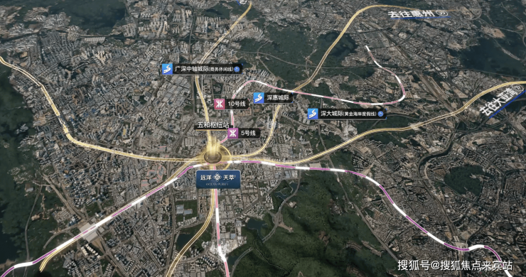 1站到五和转环中线5号线,连接深惠(在建)、深大(在建)、广深中轴(规划)等三城轨,预计未来客流量位列深圳TOP3;近可享受超级枢纽带来的丰富商业;远可便捷通达大湾区。