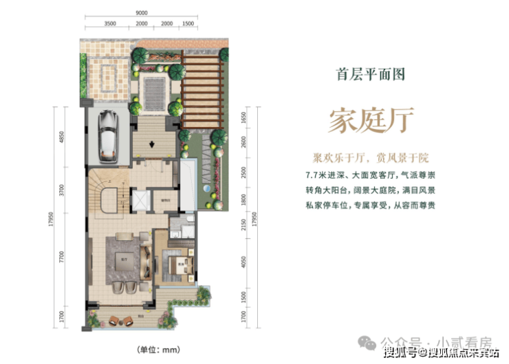 别墅建面约360㎡联排,使用面积约510平方;院子A:360㎡