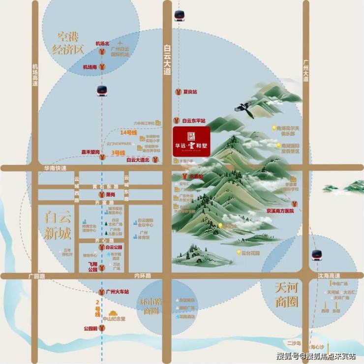 华远·雲和墅占据南粤名山——白云山,拥揽着广州城市核心资产。自古,山地别墅就是中国传统豪宅的最高形式,在广州的传统文化的符号里,是属于岭南士大夫阶层的精神所在,是仪式化贵族式的权利中心,其高度决定了广州领袖阶层生活的高度,像周恩来总理、陈毅副总理等都在白云山这里进行过国事活动。珠水之上必是云山,白云山作为广州甚至南中国的权贵聚集之地,以其绝对的城市地位,引领南中国顶级圈层时代。华远•雲和墅(大一山庄)依云山之脉而建,将葱郁云山融入院子同时,也将羊城八景第一秀——云山叠翠纳入院中。