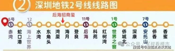 在交通方面,项目位于“豪宅地铁线——2号线”海月站和湾厦站之间,步行距离约700米,可通过后海站换乘11号、13号线,4站达福田CBD(车公庙站)、前海合作区(前海湾站)。