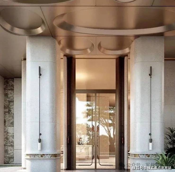 其归家动线设计极具仪式感:车行大门设置殿堂级落客区,配备天幕和水景,尊贵感扑面而来。