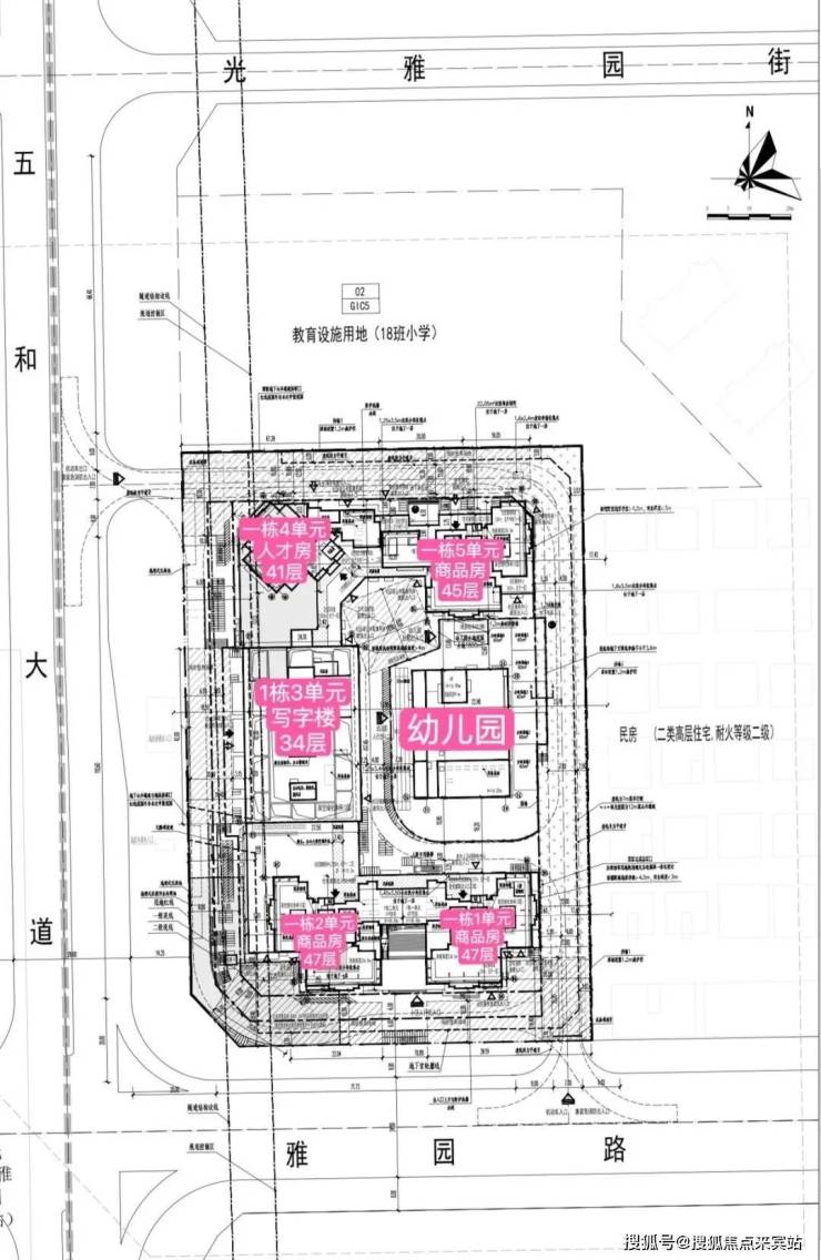 远洋集团打造,位于坂田街道五和大道与光雅园路交汇处东北侧,紧邻地铁10号线光雅园站B出口。总占地面积约1.36万㎡,共由4栋总高44-47层的住宅+1栋34层的办公组成:其中,1栋1、2单元为47层住宅,5单元为45层住宅,约615套住宅(含50套回迁房);1栋4单元为41层人才房,共180套人才房;1栋3单元为34层写字楼;2栋规划为3层幼儿园。