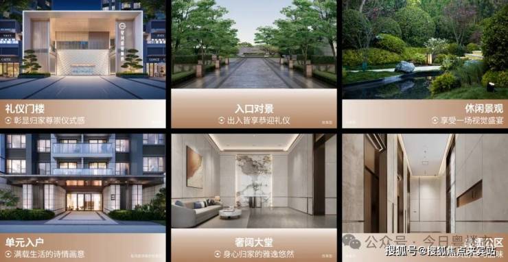 精琢六重归家礼序,奢阔礼仪门楼——入口对景——休闲景观——入户花园——奢阔大堂——品质公区,层层铺垫归家仪式感,让业主感受尊崇、互动、沉浸、归属的全新归家体验。