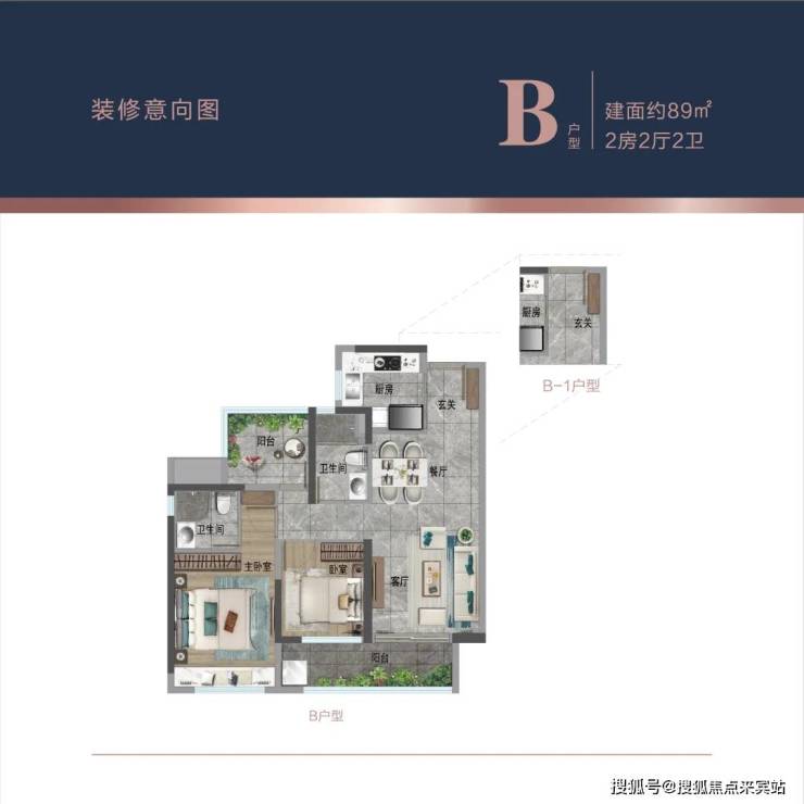 01/02:89平米2+1房 两卫 (B户型)