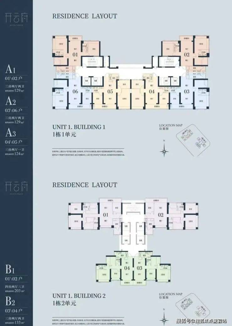 A1有两条腿,分别1-1栋01/02,主朝向是西北向,双龙抱珠格局。