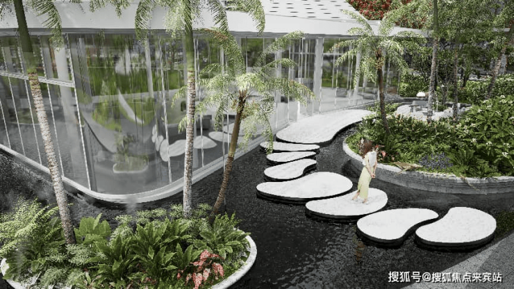 从设计说明文件可以看出:从入口到宅前,这是一段电影般的归家序曲。从“沐光缦境”的光影连廊,到水声潺潺的“花岛水幕”,再到幽深静谧的“椰林溪谷”......