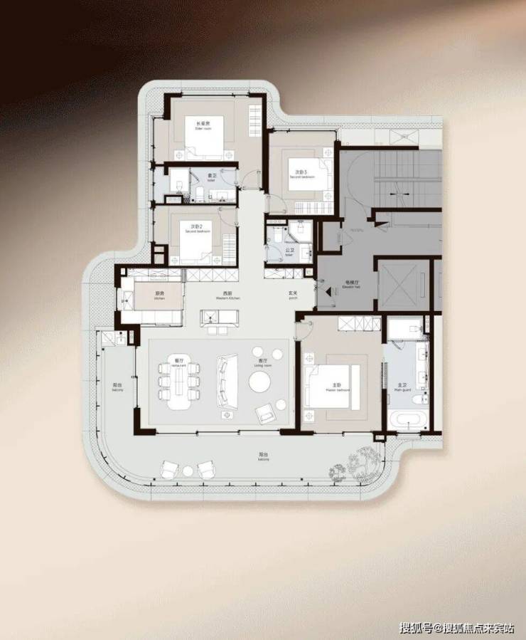 项目总占地面积约52亩,规划了6栋一线海景住宅、1栋约164米地标海景大平层以及4500㎡低层商业街区。全盘住宅仅281套,主打建面约149-556㎡一线大平层,层高约3.15-3.6米。
