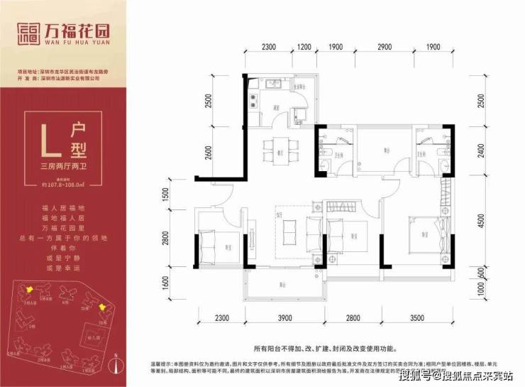 107-118m² 三房二厅两卫 总价595-650万