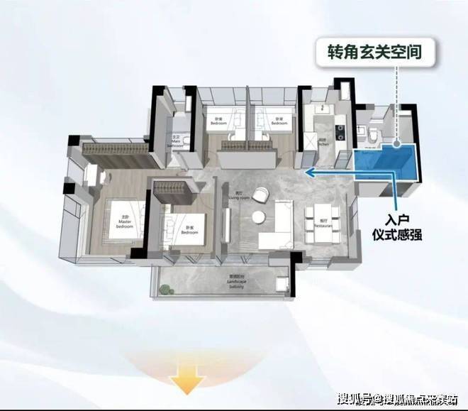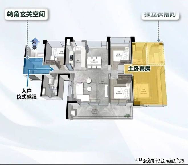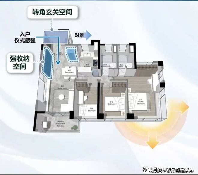 以海珠·越秀熙悦江湾的主力户型125平方米三房两厅两卫为例,与5年前同面积段产品相比,在多个方面实现了革新。在洄游动线设计上,打破了传统的空间布局,将客厅、餐厅、厨房有机串联,形成一个流畅的公共活动区域,让家庭成员之间的互动更加便捷。家政空间解放方面,设置了独立的家政间,将洗衣机、烘干机等家电集中放置,不仅节省了空间,还提高了家务效率。南向面宽最大化设计,使得客厅和两个卧室都朝南,充足的阳光可以肆意洒进室内,让居住者尽享温暖与舒适。