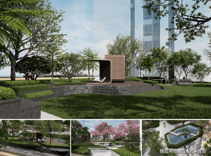 园林方面,项目聘请了DDON笛东、梁黄顾事务所等顶级设计公司。内部有3/4F景观平台和百米空中花园,立体园林设计,上下叠景。