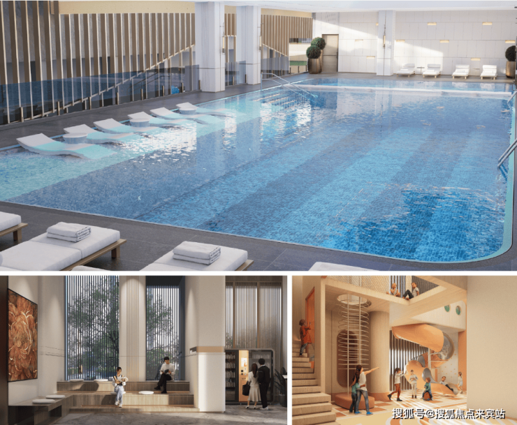 架空层做了泛会所,四点半课堂、健身瑜伽、室内泳池、休闲会客、益智游乐等全龄配套。