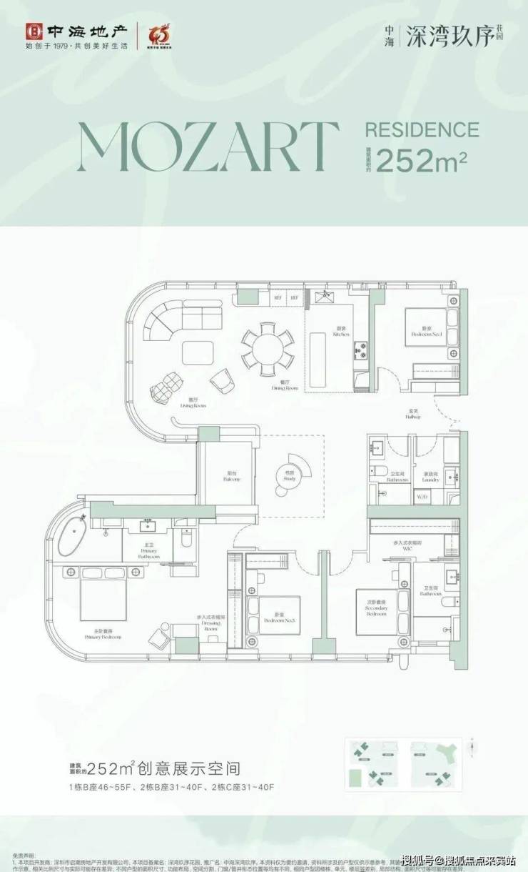 面积段:主力户型为196㎡、252㎡、328㎡大平层,少量400-600㎡顶层复式。