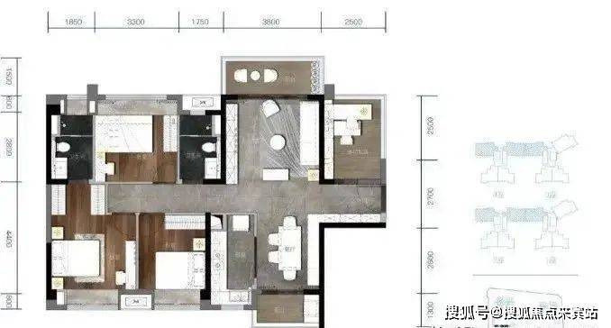 片区唯一115方四房带主套产品,双阳台设计,户型方正,南北对流