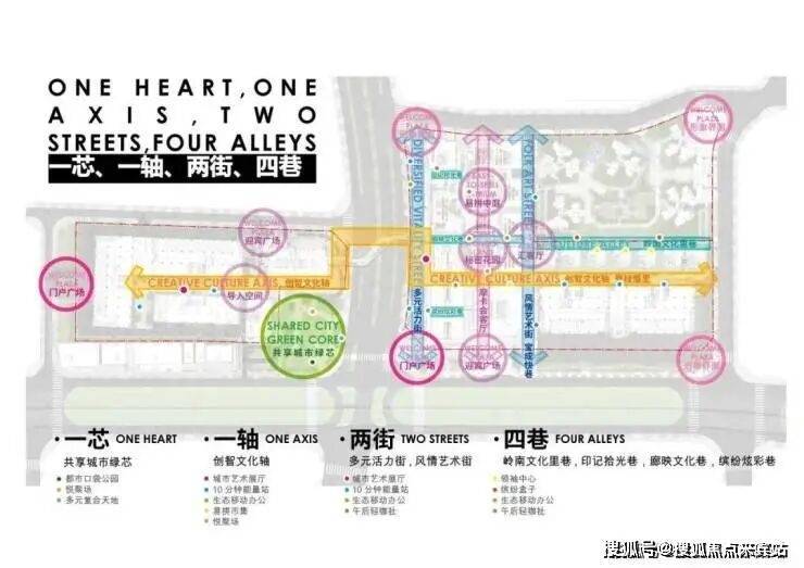 东莞中集国际数科城采用“一芯、一轴、两街、四巷”的设计理念。一条生活、休闲、创意集合的轴线连通着南北两地块;商业街巷贯穿轴线,动线交汇,空间更加丰富有趣;共享城市绿芯和广场分布在园区的重要节点上,充分考虑了园区的功能,将更多的生活形态融入到园区内,丰富整体布局,强调生活、生态与工作的和谐融合。